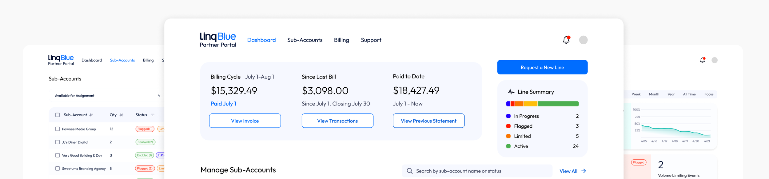 Sub-Account Management: Create and organize customers, move phone lines between accounts.